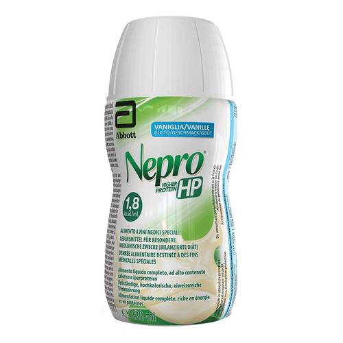 Nepro LPDescrizione Alimento completo ad alta densità calorica e basso contenuto proteico, con un ridotto contenuto di potassio. Per uso orale o per somministrazione tramite sonda. Ingredienti Acqua, maltodestrina, oli vegetali (olio di girasole ad alto contenuto di acido oleico, canola), proteine del latte, isomaltulosio*, saccarosio, glicerina, FOS**, minerali (citrato di potassio, citrato di sodio, cloruro di magnesio, cloruro di potassio, magnesio fosfato dibasico, solfato ferroso, solfato di zinco, solfato di rame, solfato di manganese, cloruro di cromo, ioduro di potassio, molibdato di sodio, selenato di sodio); emulsionante: ...