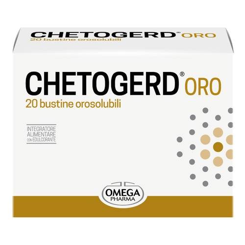 CHETOGERD ORODescrizione Associazione di acido ialuronico, fibra di buccia di mela, L-triptofano con estratti di altea e malva per un'azione emolliente e lenitiva sul sistema digerente e Musa Paradisiaca che favorisce il controllo dell'acidità gastrica. Conservazione Conservare in luogo fresco ed asciutto al riparo dalla luce e dalle fonti di calore localizzate, ai raggi solari. Formato Confezione da 20 bustine. Cod. 191 e.s. tit. 30% polisaccaridi, malva (Malva sylvestris L., folium) e.s. tit. 30% polisaccaridi, L-triptofano, aroma, sodio ialuronato polvere; agenti antiagglomeranti: biossido di silicio, sali di magnesio degl...